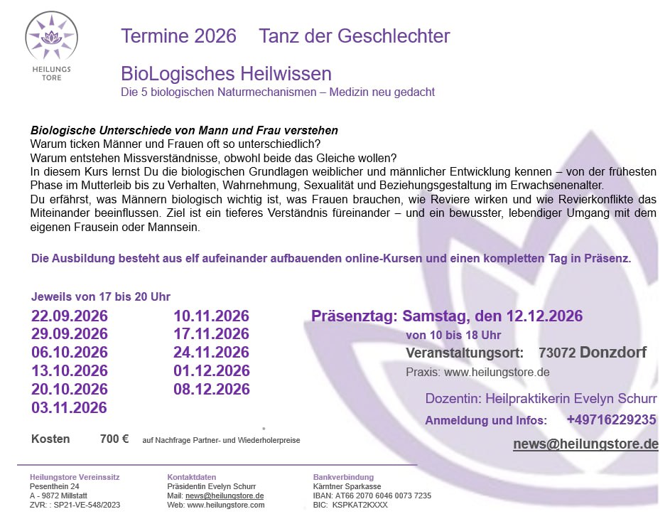 Präsenztag Tanz der Geschlechter – BioLogisches Heilwissen mit Evelyn Schurr