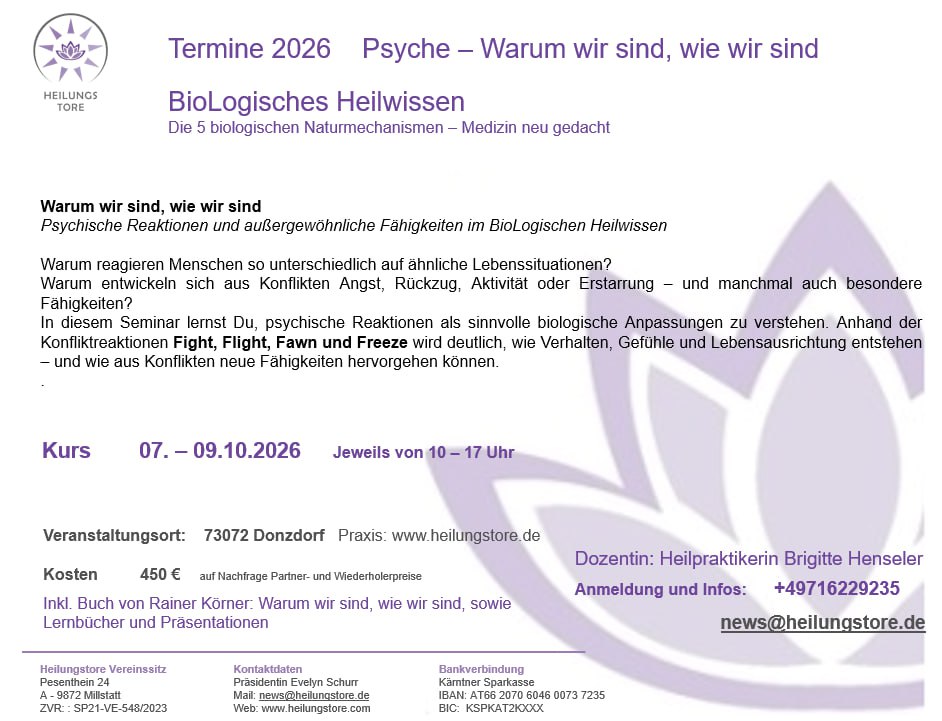 Psyche: Warum wir sind, wie wir sind – Seminar BioLogisches Heilwissen an 3 Tagen mit Evelyn Schurr